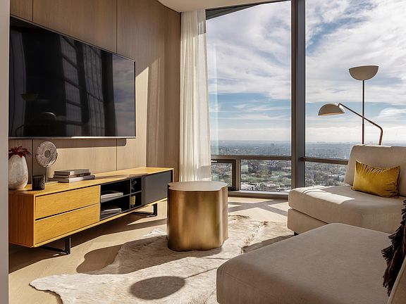 Welcome to Park Elm at Century Plaza, the epitome of luxury living. These iconic 44-story glass towers, designed by Pei Cobb Freed, offer unparalleled panoramic views through expansive 10-foot floor-to-ceiling glass windows. Entry to the towers is via a prestigious 24-hour guard-gated entrance with valet service, ensuring a seamless arrival experience for residents. Experience an array of exclusive 24-hour services and amenities, including a luxurious pool, state-of-the-art fitness center, rejuvenating spa, sophisticated screening room, tranquil library, engaging game room, personal wine storage, elegant dining rooms, and attentive concierge service at your disposal. Step into Residence 32B, a meticulously crafted two-bedroom, two-and-a-half-bathroom sanctuary spanning 2,281 square feet, complete with its private elevator lobby. Upon entering, you are greeted by a grand foyer leading into a spacious great room featuring a warm gas fireplace, a stylish Snaidero Designed Kitchen equipped with top-of-the-line appliances, and access to a 20-foot terrace, all showcasing breathtaking views. Retreat to the primary bedroom, which offers a lavish closet, an opulent five-fixture en-suite bathroom, and a private terrace for moments of serenity. The second bedroom, thoughtfully positioned on the opposite side of the residence, includes its own en-suite bathroom, ensuring comfort and privacy for all residents. Embrace the luxurious lifestyle offered at Park Elm, where every detail is designed to elevate your living experience to new heights.