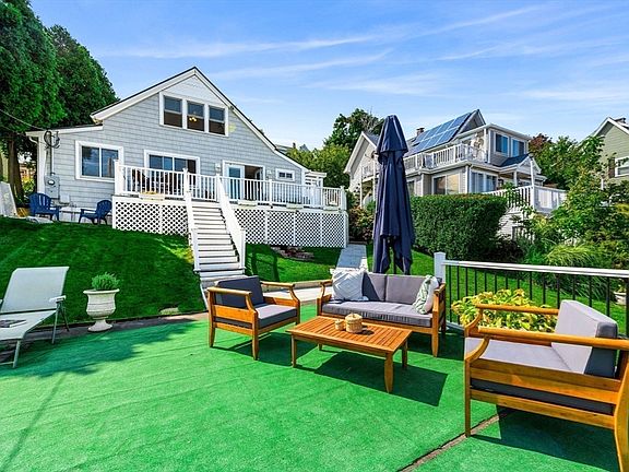 Enjoy the sound of the ocean in this 2-bed contemporary located in Revere's highly sought after Beachmont neighborhood. Steps to Revere Beach & offering breathtaking ocean views from all floors. Only 6 miles from Boston & walkable to Beachmont T station. Bright & airy open-concept living area, featuring a spacious living/dining room w/ bonus, custom built in desk space for remote workers. Off this room is a convenient 1st floor bedroom & full bathroom with beautifully tiled bath/shower. The kitchen has a abundance of cabinetry, breakfast bar, & laundry. Ascend the gorgeously upgraded hardwood staircase to the fully renovated master bedroom, complete w/ new Anderson windows for optimal ocean views from your bed, hardwood flooring, a custom closet, & built-in shelving. Step through your living room's French doors to take in panoramic ocean views from your deck or terrace. Other features include 2 car garage & manicured front & back yard. Offer deadline moved to Monday 0/23 at 12pm.