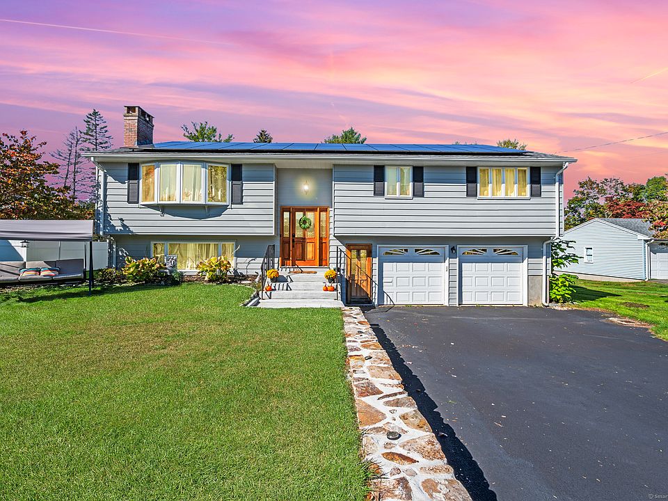 Welcome home to this lovingly maintained oversized 3-bedroom, 3 full bathroom home, in a sought-after Wethersfield location. This home features more living space than most typical raised ranches, with a town-sanctioned second kitchen downstairs making it perfect for multigenerational living. Gleaming hardwood floors throughout await you. The main bathroom was completed in 2024 as well as kitchen updates, including new countertops and island. This home features 2 full baths upstairs and another downstairs. Features include central air, deck, patio, not one but two enclosed porches. Updated mechanicals, brand new solar panels and improvements throughout. The perfect home is nestled on a flat cleared lot, perfect for hosting barbeques and garden parties. All sales are contingent upon the seller finding suitable housing.