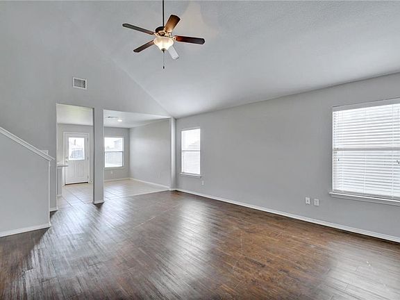 Master bedroom on first floor with three additional bedrooms and a loft upstairs. Soaring ceilings, huge back yard for throwing a football or kicking a soccer ball. Back yard patio added May 2020, great for gatherings and cooking out. Quiet street, convenient for commute on 183 or 183A. Sprinkler system Updated Summer 2020 can be managed via mobile app. New Water Heater installed 1/8/2021. New Roof and Seamless gutters 6/2021.
