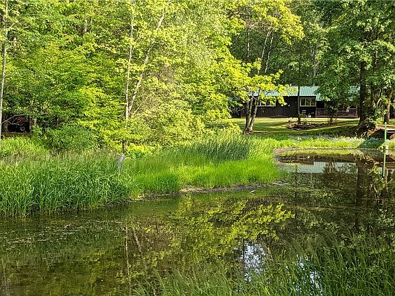 "A REFLECTION OF NATURE ITSELF"... viewed through floor-to-peak windows. The organic nature of this three bedroom, two bath Mid-century modern home is emphasized by incorporating wood and stone in its clean lines. An oversized attached garage with a vaulted ceiling introduces the possibility of additional living space. An open design in the kitchen, with island and seating, keeps the chef connected to guests. Vaulted ceilings, exposed beams, and large open spaces pull the outdoors in. A fireplace, wood stove and natural gas heating on a chilly night blur the line between in- and out-of-doors. The eleven acres provide coverage and habitat for various wildlife, while still allowing in plenty of sunlight. Fruit trees, blueberries, grape vines, and a variety of landscapes, compliment the surrounding property. The fire ring down by the pond, fishing and the sound of frogs offer the mind the same tranquility and harmony that exists in the home’s light, open, airy design and natural setting. Numerous unique shed buildings blend in with the surroundings offering the potential for everything from a potting shed to an art studio. “Life doesn’t get much better than this!”