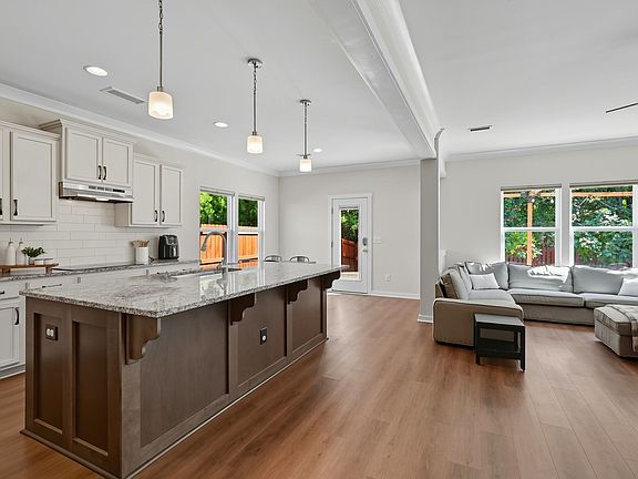 See-through fireplaceLight-filled sunroomFenced backyardSpacious patioSerene tree-lined bufferLow-maintenance sidingFormal dining room