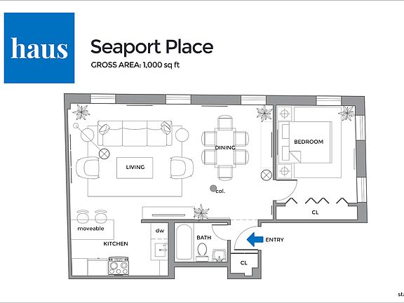 - Total interior livable area: 1,000 sqft