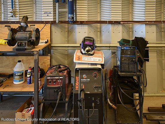 30' x 80' Quonset metal workshop set up for welding, blasting, cutting, or other crafts. Complete with a kitchenette and 2 bathrooms with showers. 220/110 along both walls and piping for welding gas. Compressor/bldg, propane (rented) tank. Well lit with air vents. This is a manly man's cave that can be converted easily to a barndominium. Water faucets along one side of the property. RV hookup outside or park in building. 20' Conex for storage. Concrete pad front and back of workshop. See the Chattel for list of tools/equipment that can be negotiated to stay. Includes 2 lots behind.