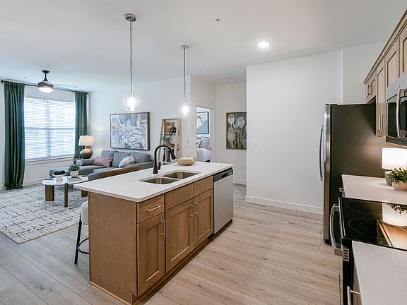 - Exterior features: 12 Ft Ceilings*, Backlit Vanity Mirrors, Business Center, Game Room, Generous Closets, Glass Top Stove/Range, Inclusive WiFi, Keyless Entry, On-Site Maintenance, On-Site Management, Package Receiving, Pet Park, Pet Washing Station, Quartz Countertops, Shuffleboard, Soft-Close Custom Cabinetry, Stainless Steel Appliances, Tile Backsplash in Kitchen and Bathrooms, Undermount Sink, Yoga Area