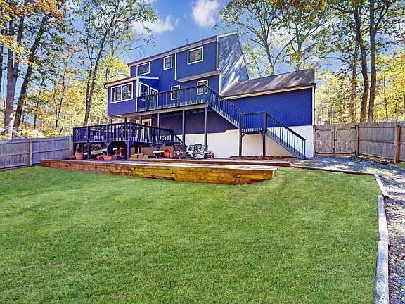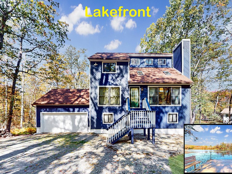 SPECTACULAR LAKEFRONT CEDAR SIDED 3 BR/2 BATH SALTBOX CONTEMPORARY HOME w/ FULLY FINISHED DAYLIGHT WALKOUT BASEMENT, A 2-CAR GARAGE w/ BUILT-IN EV CHARGING STATION, A 2ND FLOOR LOFT, & MULTI-LEVEL BACK DECKS & PAVER PATIO w/ BREATHTAKING VIEWS OF GOLD KEY LAKE & OVERLOOKING ITS LARGE FULLY FENCED-IN BACKYARD & GRAVEL WALKWAY DOWN TO 129 FT OF LAKEFRONTAGE w/ PRIVATE DOCK, ALL PRIVATELY SET ON 1.2 ACRE CORNER LOT IN MILFORD, PA. Everything you could ever want or need in this INCREDIBLE, FULLY UPDATED & UPGRADED, POCONO COUNTRY-MODERN LAKEFRONT HOME! Showcasing stunning knotty pine tongue & groove walls and ceilings, gleaming hardwood flooring, energy-efficient split unit heat & A/C, and zoned electric baseboard heating throughout. The main floor offers an inviting open-concept layout featuring a spacious living room centered around a floor-to-ceiling stone wood-burning fireplace that flows into a modern eat-in kitchen w/ beautiful wood cabinetry, granite countertops, stainless steel appliances, and a full dining area. A massive accordion glass door opens to a bright 4-season room/extended dining space w/ access to the 2nd level deck--perfect for entertaining lakeside. The main floor also features a luxurious, ultra-modern bathroom w/ a walk-in glass shower accented by river rock tile flooring, rainfall showerhead, wall massage jets, sleek black toilet, and stylish vanity, along w/ a spacious main floor bedroom. Upstairs, the open loft overlooks the living area below and leads to 2 additional large bedrooms and a full bath. The fully finished walkout basement adds even more living space, complete w/ laundry closet, water filtration system, a large pellet stove, and sliding glass doors to a HUGE lower-level deck--ideal for hosting gatherings or relaxing while enjoying panoramic lake views. DV SCHOOL DISTRICT - LOCATED JUST MINUTES AWAY FROM THE HEART OF THE HISTORIC TOWN OF MILFORD, I-84, & MILFORD BRIDGE FOR QUICK & EASY COMMUTE TO NJ & NY.