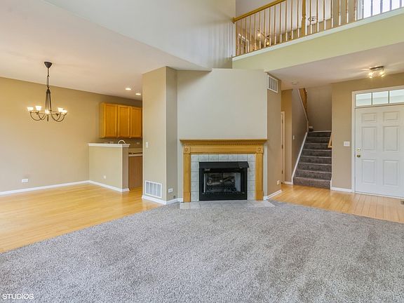 Great opportunity to own this light filled townhome which offers the perfect blend of spaciousness and contemporary living. This 2 story townhome features an open concept main level that integrates the kitchen, dining room, and family room making it perfect for every day living or entertaining. The fireplace in the living room offers a warm, relaxing atmosphere to the area. The kitchen features bamboo flooring, stainless steel appliances, and a closet pantry. The first floor laundry room, powder room, and coat closet add to the functionality of this home. The sliding glass door to the deck off the dining room is perfect for relaxing or entertaining outdoors. The 2nd level features 2 large bedrooms, both with ceiling fans, plus a great loft for an office or play area. Master has 2 large double closets and full bath with double sink vanity and is shared with second bedroom which has built in shelving in the closet. The lower level, which also has a fireplace, could be used as a family room or a guest suite with a full bath and plenty of storage/closet space. 2 car attached garage with shelving completes this home. This location is within walking distance to Harvest Hills Park, minutes to Otter Cove Aquatic Park, Hickory Knolls Discovery Center, Kane County Fair Grounds and James O Breen Community dog park. Conveniently located to Randall Road shopping and close to both downtown St. Charles and downtown Geneva.