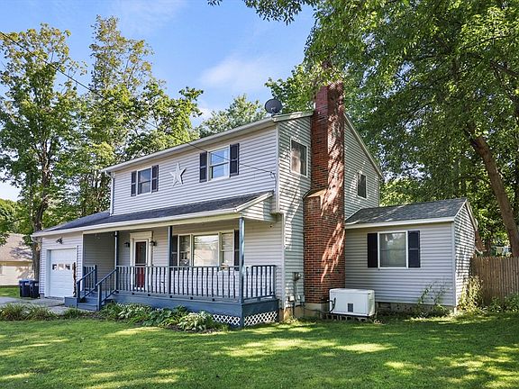 Colonial home with 4 bedrooms, 1.5 baths, fenced-in backyard and attached garage, located on a corner lot, within walking distance to Pontoosuc Lake, a motor-boat lake that is great for swimming, fishing and canoeing. It is a lovely place with picnic tables and a boat ramp! The property offers an inviting front porch leading to a great first floor layout , featuring living room with wood burning fireplace, renovated half bath, bedroom, and dining area open to the kitchen which has soft close cabinets & drawers. The 2nd floor offers an updated full bath and 3 additional bedrooms, including a large primary!