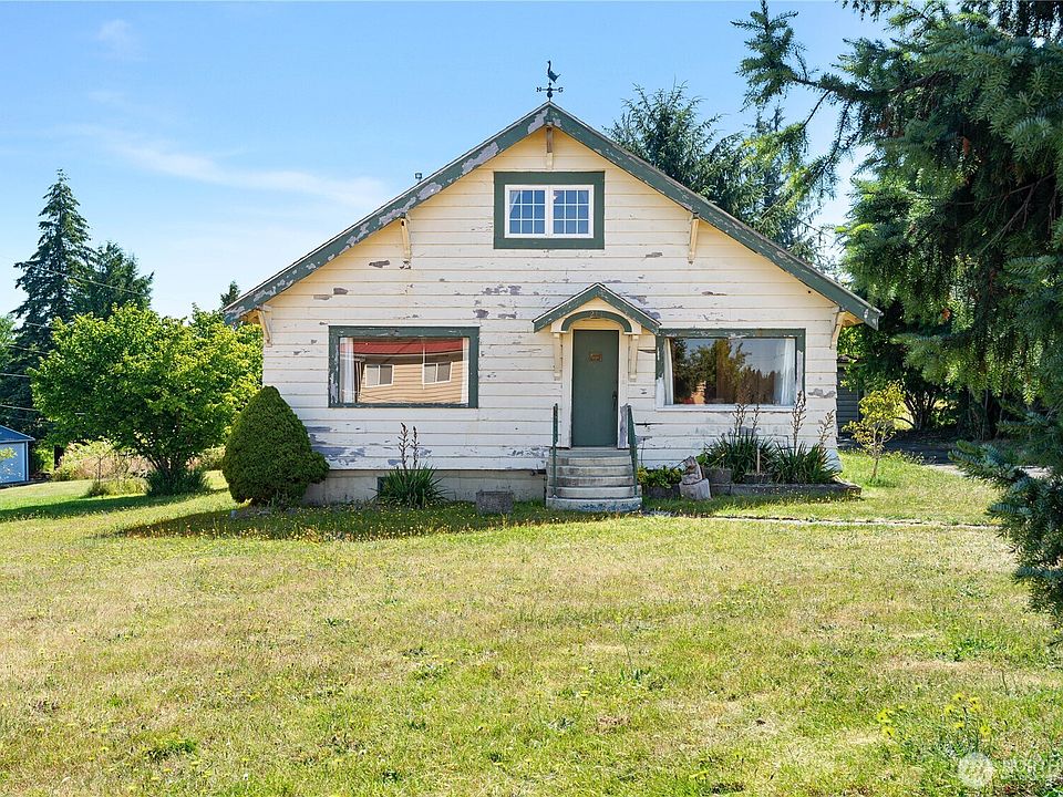 Perched on a scenic hilltop, this 4-bedroom, 1-bath home blends rustic charm with unlimited potential. With 1,275 sq ft of space, it features tall ceilings, hard floors, and a flexible layout, two bedrooms downstairs and two upstairs. Enjoy a classic front porch, a covered back utility room, and a detached two-car garage. The expansive lot is a gardener’s dream, with mature landscaping and fruit-bearing trees including cherries, apples, and plums. Plenty of space for RV parking, expansion, or building additional structures. Whether you're seeking a peaceful escape or envisioning a small homestead, this home delivers beauty, space, and opportunity. Check it out today!