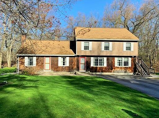 This property is surrounded on 3 sizes by DCR Conservation land. Set at the end of a dead end street, this home features over 2400 sq. ft. of living area. Enter into a large living room with wood stove that is open to the kitchen and dining room. A master bedroom was added on the main floor with a handicap accessible bathroom. An additional full bath with laundry on the main level and a family room with fireplace. Upstairs has 2 bedrooms in the main part of the house (one bedroom does not have a closet). A potential in law was added on upstairs that includes a 2nd kitchen, living room, bedroom, full bath and walk in closet. Outside there is an oversize storage shed and barn. Beautiful, private yard with lots of potential. Easy to show, make your appointment today.