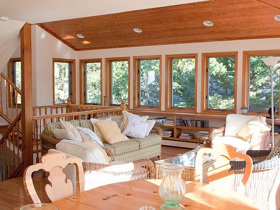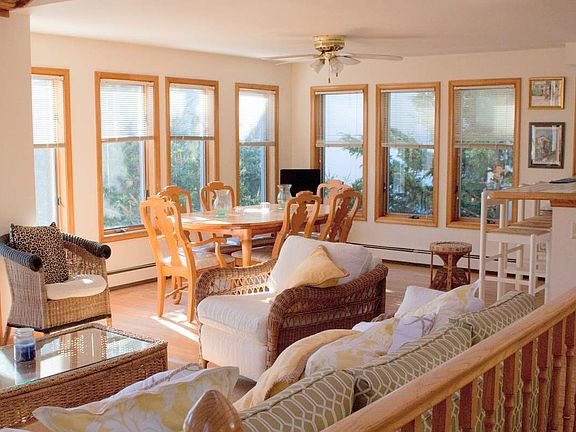 This lovely beachfront home offers a serene environment with mature trees and shaded yard overlooking the dunes and beach of Cape May Point. This is an upside down design with three bedrooms on the first floor, a ground level deck and front porch. The second floor offers a spacious great room, a large dining area with several built in's, a bright and airy living area and a small screened in porch off the living room. The third floor loft sitting area offers a fireplace and a deck overlooking the ocean views and an window framing a picture perfect view of the lighthouse. Exterior features include an outside shower with enclosed dressing room, and storage for your bikes and beach equipment. This home has an excellent rental history. Offered mostly furnished, excluding artwork and personal items.
