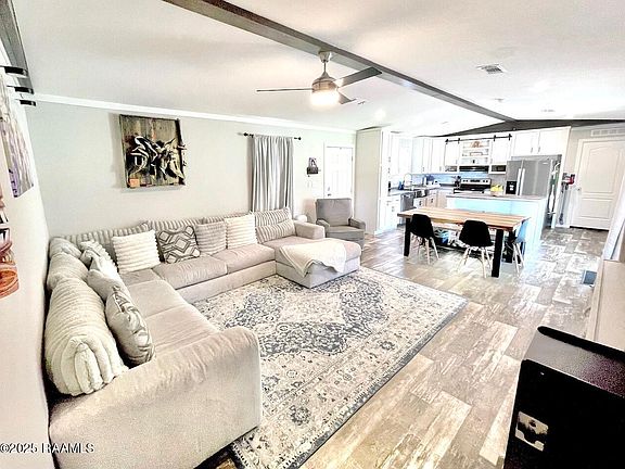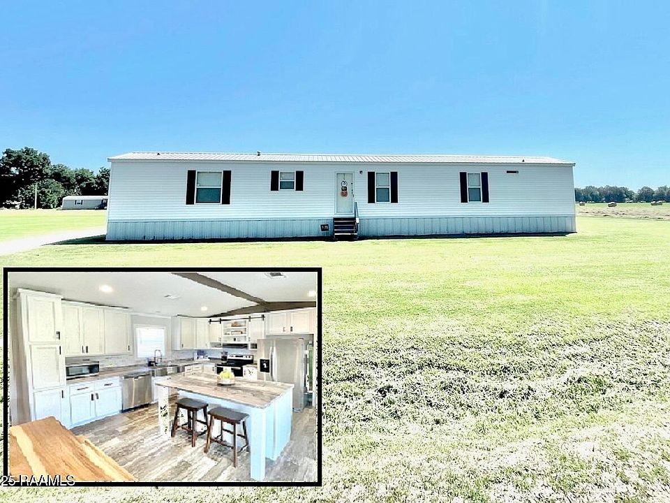 You will LOVE this 1 & 1/2 years young manufactured home!! There are beautiful features inside and some very convenient ones outside!! This 2023 Champion Homes, Iberville model, offers 1216sf that are spotlessly maintained and completely MOVE-IN READY! The MODERN kitchen has plenty of cabinets, a farmhouse stainless sink, an ISLAND, stainless APPLIANCES, including the REFRIGERATOR, and it is OPEN to the dining and living room. Both dining and living areas are a very comfortable size. The primary bedroom is spacious and has a 5-piece ensuite bath which includes a soaker tub and a 5x4 shower with glass door. Two additional bedrooms are also spacious and the hall bath includes a tub/shower combination. The laundry area was customized with shelving to accommodate laundry needs. The carport & patio are VERY NICE! Parking space is a GENEROUS 25' wide and 20' deep!! PLUS, the patio is the exact SAME very SPACIOUS size!! You and your loved ones will certainly enjoy relaxing, visiting, and cooking outdoors under this wonderful shaded space! The yard is beautiful and the planter boxes are perfect for growing your own organic vegetables and herbs! Quite SURPRISING is the ADORABLE 10x12 red metal BUILDING!! It is fully INSULATED and completely FINISHED with vinyl PLANK flooring, PAINTED 1/4 inch plywood walls, has ELECTRICITY, PLUMBING and is CLIMATE CONTROLLED!! It is just the right size for a home OFFICE, workshop, a quaint salon, an inviting calming space, or maybe just valuable storage. Another cool feature, in the back yard there is TURF under the swing set! FEEL like you're living far out in the country on this VERY LOW TRAFFIC dead-end road, and keep the convenience of being just 3 minutes to E Broussard Rd, and 6 min to Rousse's Grocery!! Zoned for Ridge Elementary, Judice Middle, and Acadiana High. This nearly brand new, lovely home is a great find!!