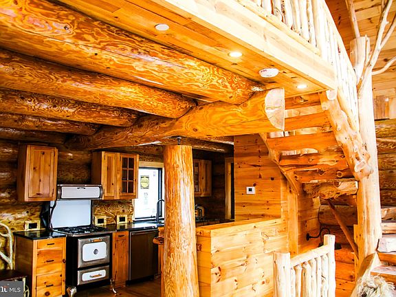 Lake access! Lake views! One of a kind Custom 4 bedroom Log home built with 18” logs, large antler chandelier, custom cedar spiral stairs, indoor and outdoor fireplaces, large deck and covered patio area. This is a one of a kind property and must be seen in person to appreciate! Wow, this striking four-bedroom residence stands out as one of the most distinctive homes on Deep Creek Lake. The main level features a gourmet kitchen with professional-grade stainless steel appliances and granite countertops, complemented by a spacious living room and a cozy family room centered around a wood-burning stove. Step outside onto the expansive 22' x 13' deck to enjoy panoramic lake views. Upstairs, the primary suite offers comfort and privacy with its own bathroom and serene views of the lake. The lower level includes three additional bedrooms, a full bath, and access to a 25' x 13' patio complete with a wood-burning fire pit — perfect for relaxing or entertaining outdoors. Every level of this exceptional home showcases beautiful views of Deep Creek Lake, blending rustic charm with modern comfort. In addition, the property offers lake access privileges, providing the full Deep Creek Lake experience.