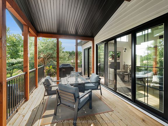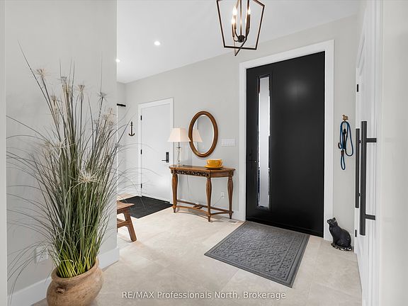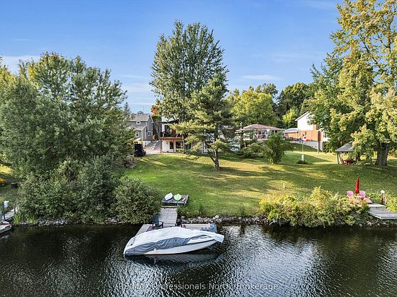 Welcome to this exceptional quality, one-year-old custom-built residence offering luxurious living on the Muskoka River with access to Lakes Muskoka, Rosseau, Joe. This fully serviced, in-town waterfront home combines modern elegance and design with timeless Muskoka charm, making it an ideal retreat for discerning buyers. Step inside to find exquisite quality of finish throughout, beginning with a grand 8' entry door that opens into a thoughtfully designed open concept main level.with 16' ceilings, shiplap accent walls, hardwood flooring and a stunning gas fireplace and walkout to the front 11' X 27' covered and open riverview deck. The main floor also features a stunning master suite, private office, convenient laundry, and a chef-inspired custom kitchen with granite countertops, a centre island, and high-end finishes and appliances. The walkout lower level expands the living space with two additional bedrooms, a fitness room, and a large family/entertainment room complete with wet bar which is perfect for gatherings or relaxing by the shoreline.This home has been built with quality and efficiency in mind: pre-finished wood exterior, high-efficiency furnace with central air, triple-pane windows, upgraded insulation for soundproofing, and solid interior doors throughout. The heated double garage adds comfort and convenience year-round. With its prime location, designer finishes, and seamless access to Muskoka's most desirable lakes, this property is a rare opportunity to enjoy luxury waterfront living within minutes of town amenities.