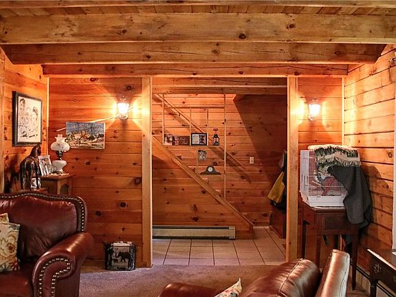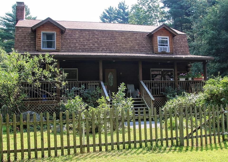 Unique secluded and spectacular custom built Log home with farmers porch situated on 5.88 acres of tranquil woods. Features fireplaced living room, eat-in kitchen, dining room, lavette and laundry room on 1st floor. Large master bedroom, plus two more bedrooms and full bath on 2nd floor. Pine floors throughout. Home has whole house generator. Only 3 year old roof. There is a large barn equipped with water and electricity, great for work shop or horses, plus attached chicken coop. Separate shed. Log home is set back off the main road which is lightly traveled.