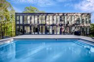 Integrated bertazzoni appliancesWaterfall islandFour private ensuite bedroomsFirst-floor gymRefined fixturesPorcelanosa-tiled wood-burning fireplaceRadiant heated floors