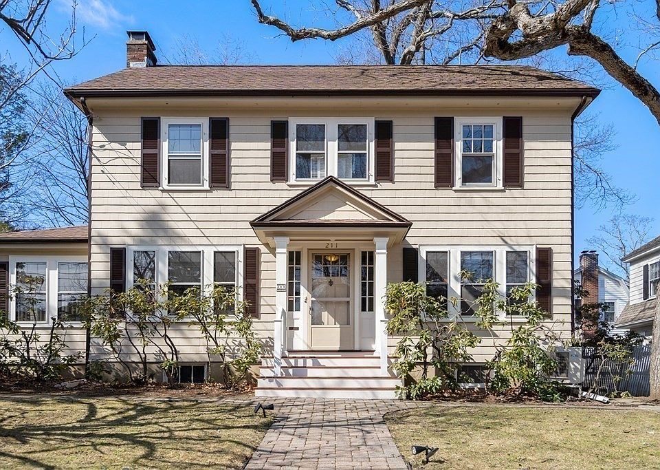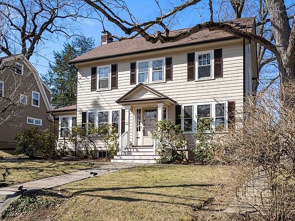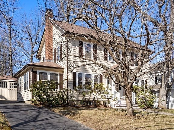 Welcome to this lovely 3-level colonial, in one of Auburndale's most desirable neighborhoods. The 1st floor features an eat-in kitchen with sliders to a large deck and fenced in level-yard, a dining room with original wainscoting, living room with beamed ceiling and wood-burning fireplace, bright sunroom and powder room. The second floor includes a primary bedroom with custom built-ins and an en-suite bath. Two additional bedrooms, and guest bath round out this floor. Beautifully refinished wood floors on 1st and 2nd levels. The expansive third floor is bright and inviting with large picture windows, a skylight and vaulted ceiling. This amazing space with a full-bath, offers many possibilities as a family/game room, office, exercise area or second primary bedroom. Other amenities include a single-car detached garage and an unfinished basement with high ceilings and lots of potential. Close proximity to Commuter Rail, shops, restaurants and parks. Offers to be reviewed Mon 3/27 @ 4pm.