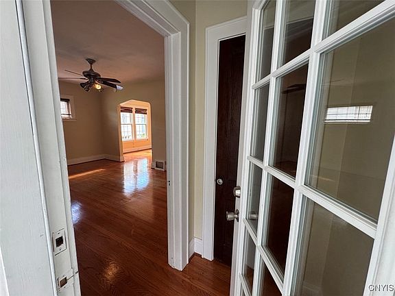 Welcome to this beautifully renovated, well-maintained home that has so much to offer to its next lucky owner, including gleaming hardwoods, loads of natural sunlight, new kitchen complete with quartz countertops, matching stainless steel appliances, new cabinets, and the list doesn’t stop there! Brand new driveway, new bathroom fixtures, fresh exterior and interior paint, new vinyl windows, central air (wow!), recent mechanicals and updated electrical fixtures have all been taken care of so you can enjoy your home from Day 1. Bask in the healing sunlight from the array of windows in the heated enclosed front porch, or hide away in your garden in the private, fenced-in backyard. Complete with both a sizable living room and formal dining room, there is plenty of space to entertain guests or have holiday gatherings. Ample storage space in both the basement and large, walk-up attic that already boasts a storage closet with lighting and shelve space, not to mention the generous detached garage. Metal roof with over 20 years of estimated useful life left gives extra peace of mind. Conveniently located with quick and easy access to the interstate and just minutes from Destiny USA and downtown Syracuse will shorten those commutes. Clean, comfortable, affordable living awaits in this cozy two bed, one bath beauty in the Northside neighborhood, so schedule your showing today!