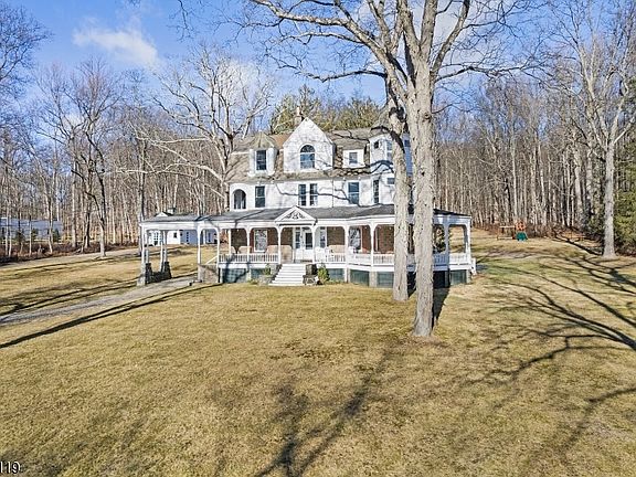 Stunning, beautifully renovated circa 1888 Queen Anne Victorian-replete with welcoming 1,670 sq. ft. wraparound front porch, asymmetrical exterior designs employing stone & patterned shingles, steeply pitched rooflines, round & polygon towers, original stained glass windows, & volume ceilings, plus original custom millworker, period doors & hardware, & hardwood flooring throughout--captures the charm & elegance of a bygone era but with all of today/s modern features & conveniences. This majestic home encompasses 4,742 sq. ft. of commodious living space on 3 flowing floors and boasts 14 rooms including 6 airy bedrooms, 3 renovated full baths, updated powder room, with two lovely primary bedroom suite options on separate floors- each with delightful sitting areas and en suite full baths: tasteful living room, open floor plan family room features a sliding glass door to the inviting bluestone patio: renovated designer kitchen boast granite countertops w stainless steel farm sink, custom cabinetry, premium stainless steel appliances including a Thermador six burner gas range with center griddle & 2 ovens, elegant dining room measures 27x14. The second & third floors offer high ceilings 6 bedrooms, 3 full baths, laundry room, home office and exercise room. Fully fenced 4.2 acre pancake flat property w restored 2-story barn, newer 6 bedroom septic system, public water, gas heat from newer boiler, brand new 2-zone central air conditioning (2nd & 3rd floors), plus Verizon Fios.