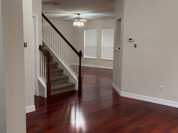 GORGEOUS MOVE IN READY 4 BRM 2.5BA with upgrades throughout! Located in the very desirable neighborhood of Woodcreek!! Neighborhood feature 3 pools, spray park, several playgrounds, walking trails, two fitness centers, and a dog park. This beautiful home sits on an oversized lot with a large fenced in back yard and includes 3 living areas in which one can be used as an office. The kitchen includes a new side by side fridge and cook top stove. a spacious kitchen with granite countertops. The master includes large walk in closet. The second upstairs living area can be used as a gameroom or a 5th bedroom. The home features custom Patagonian RoseWood hardwood flooring downstairs and newly replaced carpet upstairs. Conveniently located near I 30 and close to shopping and restaurants in nearby Rockwall. Contact us for a pre screening before you submit your application.