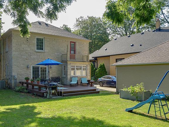 Step into timeless elegance with this stately Lannon Stone Colonial in Tosa's prized Ravenswood neighborhood. The renovated kitchen is a standout, featuring newer cabinets, granite counters, center island plus an open layout into the extra-large dining room. Rich in detail with lots of old world charm- enjoy glistening hardwood floors, vintage tile, arched doorways, built-ins and a natural fireplace that adds character to the inviting living space. Upstairs you'll find 3 bedrooms with a spacious Primary Bedroom offering a dual entry into full bath with walk-in shower and tub. Expand on family space in your comfy rec room. Not to be missed is an exceptional backyard with large deck and mature trees. With curb appeal, character, and move-in ready updates, this home is truly a rare find!