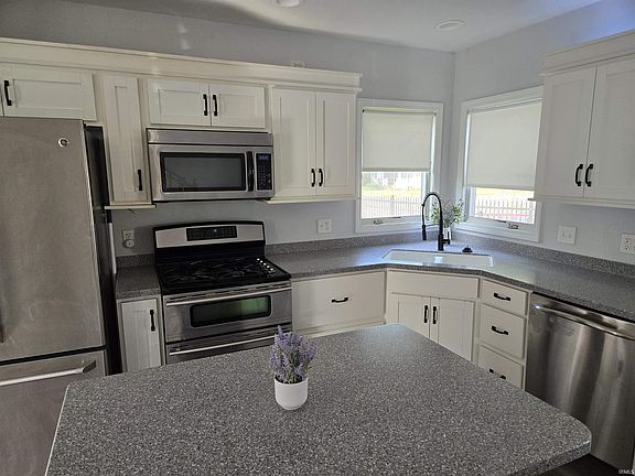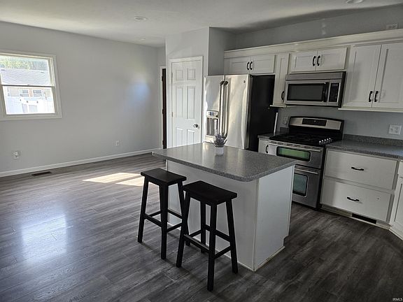 Discover the perfect blend of charm and modern convenience in this delightful 3-bedroom, 2-bathroom home located in the heart of Syracuse. With its unique character and thoughtful features, this property is sure to capture your heart. Experience the warmth and charm of a home rich in character and style. Stunning Kitchen: Cook and entertain in a beautifully designed kitchen equipped with all necessary appliances. Enjoy the convenience of an upper-level laundry room, making chores a breeze. A cozy den provides flexible space for an office, playroom, or additional living area. An open floor plan creates a seamless flow between the living and kitchen areas, perfect for modern living and entertaining. Relax in the inviting enclosed porch, a perfect spot to enjoy the morning sun. The fenced yard features a shed for extra storage and a fire pit for memorable gatherings. Close to Syracuse Lake: ideal for water activities and scenic relaxation. This charming home offers a blend of comfort, convenience, and character in a desirable location.