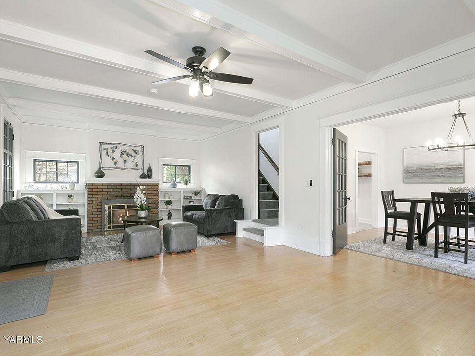 This stunning Turn Of The Century home has had a beautiful remodel while keeping the charm of it's time. Nestled on a quiet street near downtown Yakima, close to schools, shopping, dining and a brewery. Upon entering from the front covered porch you will be charmed by the spacious living area with original hardwood floors. A gas fireplace surrounded by built-in shelves is so inviting. Double French doors lead to a formal dining room which is central to the living room and kitchen. And what a gorgeous kitchen! Newly updated with new cabinets, tile floor, amazing butcher block counters and stainless appliances. A large mudroom leads to the backyard where you will find delightful perennial landscaping for privacy. The large master bedroom with updated en-suite is on the main level. Upstairs you will find 3 bedrooms and an updated full bath. One of the bedrooms with a fireplace is so spacious it can also be used as a bonus room. All new carpet upstairs. New AC plus a minisplit on the upper level for even cooling. Home has had new electrical wiring, light fixtures, and plumbing. Come take a look!