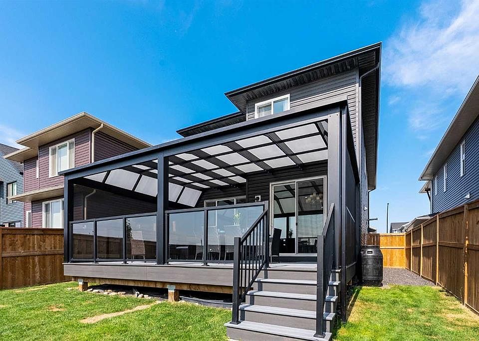 Gorgeous Enclosed deck. Welcome to this stunning 4-bedroom, 3.5-bathroom home offering the perfect blend of style and functionality. The open concept main floor features a bright living space with large windows, a modern kitchen with quarts counters, stainless steel appliances, and an island ideal for entertaining. A main floor office provides the perfect workspace for today’s lifestyle. Upstairs, you’ll find a spacious bonus room along with three generous bedrooms, including a private primary suite with a walk-in closet and luxurious ensuite. The fully developed basement expands your living space with a stylish wet bar, rec area, an additional bedroom, and a full bathroom, perfect for hosting guests. Step outside to your covered deck and enjoy the sunny south facing backyard, a great setting for year round relaxation. The heated garage with gas heater adds comfort and convenience through the colder months. This home has it all, space, upgrades, and thoughtful design throughout.
