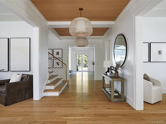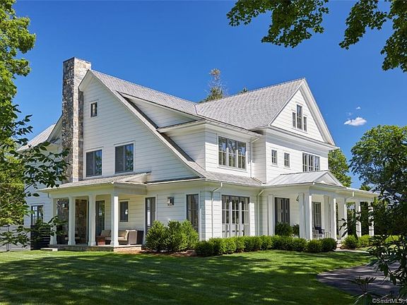 Located on prestigious Oenoke Ridge Road in the heart of New Canaan, this truly spectacular modern farmhouse provides every high-end amenity with stunning designer finishes and the highest level of craftsmanship for your dream summer experience. Just steps from the Nature Center, walking trails and a short walk to the center of Town with amazing restaurants, shops and theater, this location could not be better. Maintained to perfection, this airy open concept home offers wonderful flow from the welcoming wrap around porch to the foyer and living room with a gas fireplace, large chefs kitchen with a huge island and butlers pantry and bar, adjacent to the large family room also with a fireplace and French doors leading to the private, beautifully landscaped backyard with a Gunite pool and spa for your enjoyment. The large patio has plenty of comfortable seating and the outdoor kitchen is perfect for alfresco dining. The Primary Suite has a cathedral ceiling, spa bathroom and walk-in closet all overlooking the pool and gorgeous grounds. Four additional ensuite bedrooms complete this level. The lower level has a large game room, full gym and the special bonus feature is the barn outfitted with a basketball court. The flat grassy backyard is the perfect backdrop for croquet! Truly a special offering. $400 Move-out Cleaning Fee. Optional Weekly Cleaning Fee.