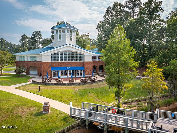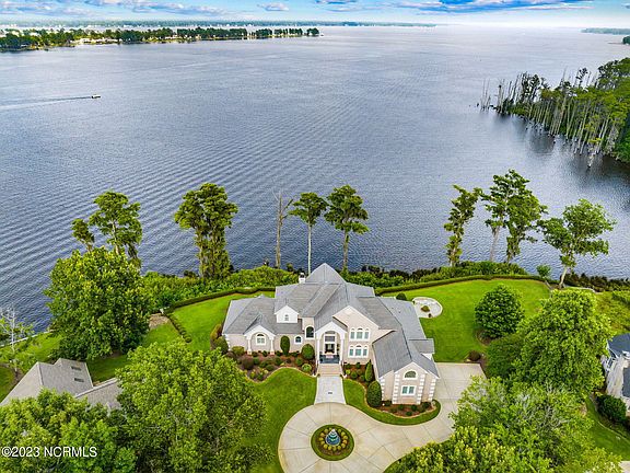 Welcome to La Ventana a magnificent luxury home nestled in the heart of Cypress Landing Marina, Golf & Tennis Community. Situated on a premier waterfront lot, this exquisite estate boasts an impressive 338 feet of water frontage offering unparalleled views of the Chocowinity Bay & Pamlico River. As you approach the home a circular driveway adorned with an enchanting Italian fountain sets the stage for the grandeur that awaits. Step into the two-story marble foyer and you'll be immediately drawn to the Grand Room - a true marvel- featuring floor-to-ceiling Palladian windows that bathe the space in natural light & offer breathtaking views that make you feel as though you're just steps away from the waterfront. From here you can relish in the sight of wildlife, passing boats & the iconic waterfront green of the 15th hole of 4-star rated Cypress Landing Golf Course. Hosting gatherings is a pleasure in the elegant Formal Dining Room, capable of accommodating grand events and seamlessly connects to the morning room providing additional dining area and stunning views. Prepare culinary masterpieces in the exquisite Gourmet Kitchen boasting gorgeous custom cabinetry, granite, a 2-tiered island & high-end appliances. Discover the inviting Sunroom off the kitchen where you can enjoy the natural beauty of the waterfront & golf course. The main level luxurious Owner's Retreat is a haven of tranquility with stunning water views & includes a Sitting Room & Deck overlooking the waterfront. Pamper yourself in the luxurious Bath adorned with quartz vanities, spa shower & jetted tub. A Home Office on the main level offers custom cabinetry & picture-perfect views of the river. Ascend the staircase with Milan wrought iron balusters to the second floor where you will find a spacious waterfront Guest Suite. Two additional Guest Rooms share a generously sized Hall Bath. An expansive Family Room & convenient secondary stairway back to the main level complete the 2nd floor.