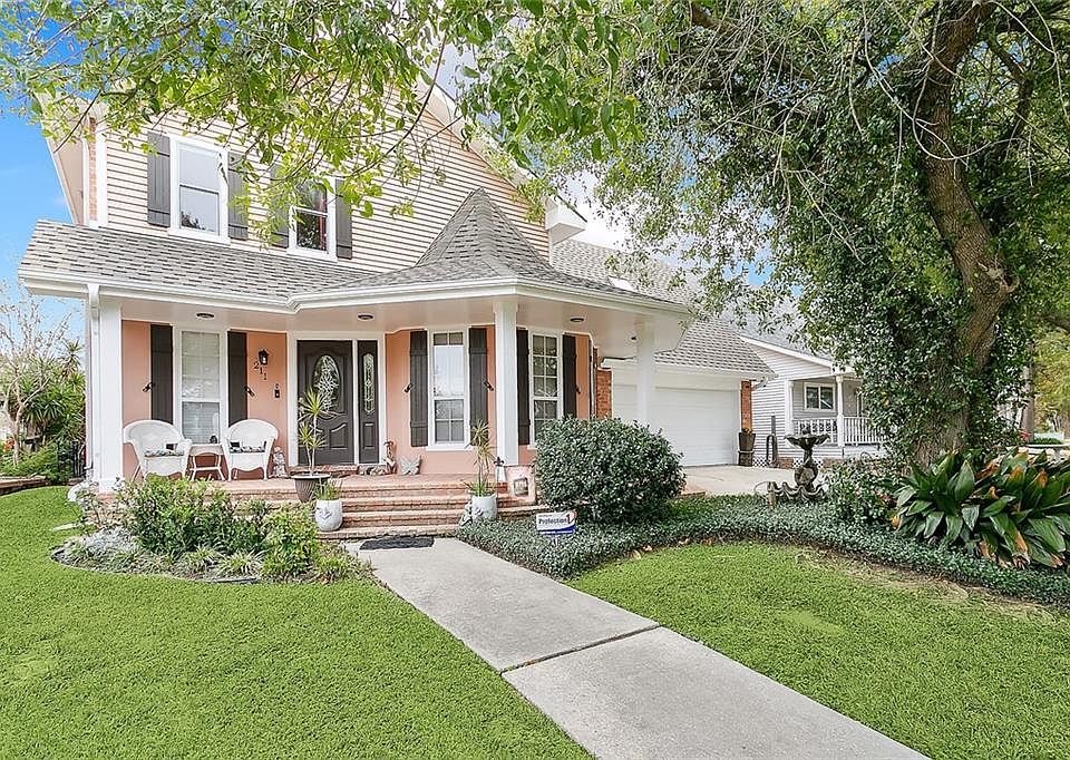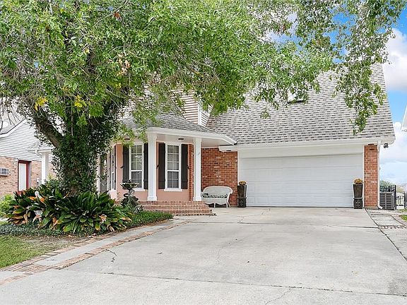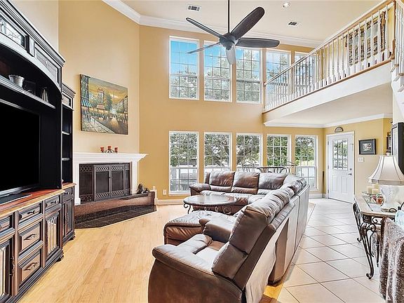 Curb appeal in front and rear! This home is a water lovers PARADISE. A perfect home for everyone who enjoys life on the water and spectacular views! It is located on a deep water canal and just minutes from I-10. There is so much to see inside and outside and all the way around. You will be greeted by a nice size foyer and large dining room with very unique architectural ceiling detail. The warm kitchen boasts a double oven, birch wood cabinets, functional peninsula with prep/serving/seating space, lots of counter space and 2 pantries. Wrap around views in the breakfast space that can seat more than 6 people comfortably. Over 17' ceilings in the living room with windows from top to bottom that floods the room with natural light and unbelievable sunsets and sunrise views. There is a focal point wood burning fireplace and lots of space for large pieces of furniture. The floor plan is layed out so beautifully with an upstairs loft that offers stunning views and open to the downstairs so you can enjoy relaxing, working, sleeping. You can peak at the waterviews from above and watch TV below. The upstairs primary suite offers a jacuzzi tub with sky views, expansive walk-in closet, and a balcony with the best view in the neighborhood. You can add furniture to the concrete upper deck with rails (23' x 16') and enjoy stunning sunsets, boat parades, or unwind and relax and enjoy all that waterfront living has to offer. The backyard oasis is loaded with amenities. It features a newly added covered patio, low maintenance outdoor entertaining areas, iron fence, dock, boathouse, floating dock, jet ski dock, fishing and the unbelieveable proximity to Lake access. Oversized garage with utility sink, work area and rear yard access that you can open up from front to back for entertaining or practical purposes. Recently upgraded roof (2022), AC unit, gutters, water proof upstairs deck with hardy board, windows, and insulation.