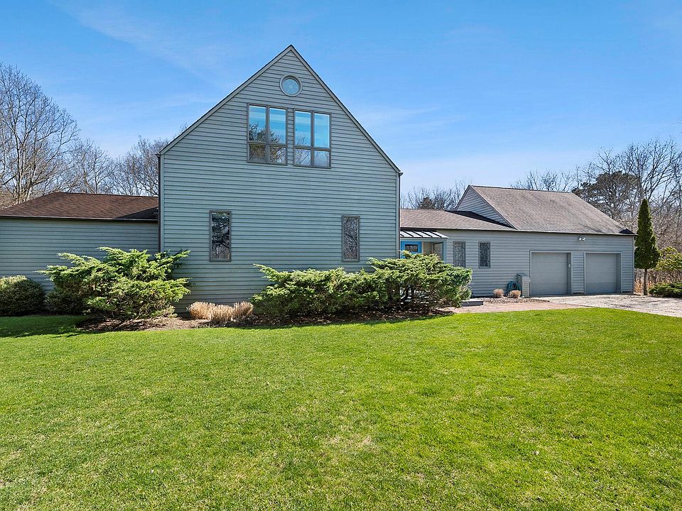 Privacy and natural beauty abound in this sun-filled 4-bedroom, 3.5-bath, w/full basement and 2 car attached garage 2,377 sq ft home owned by local artist located on 2.42 acres surrounded by 165 acres of natural preserve. Main level offers entry foyer, vaulted ceilings in kitchen, dining and living rooms. Open kitchen w/stainless steel appliances, large dining area and formal living room w/wood burning fireplace with 2 additional sliding doors opening all opening onto the oversized and private back deck, pool, lawn and preserve. Laundry and updated powder conveniently located off main hall. Ensuite 1st floor junior primary, with two additional guest bedrooms and full shared bath Upper level provides an oversized primary suite, complete with vaulted ceiling, woodburning fireplace and large full bath w/walk-in shower. Outdoor living space is fenced in and provides 20 x 40 heated pool, outdoor shower on 1,500 sq ft deck with ample space for entertaining. Community tennis court, and endless hiking opportunities just past the perimeter. Perfectly situated between East Hampton and Amagansett, bay and ocean beaches this is a great opportunity for a buyer looking for a unique private abode surrounded by natural beauty.