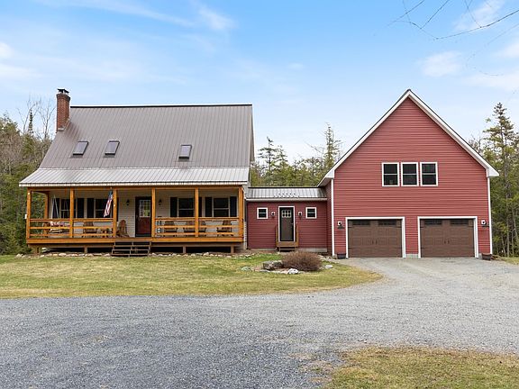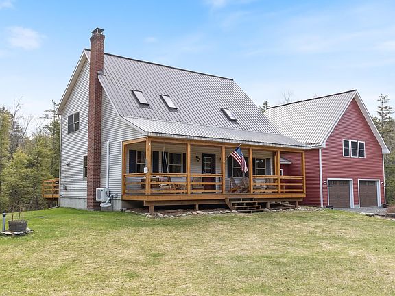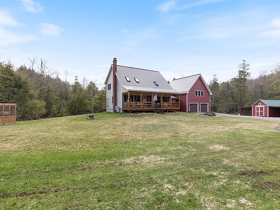 This post and beam Cape hints of Vermont Vernacular architecture, & is tucked away with total seclusion amidst 10 private wooded acres along a beautiful private drive that only serves 2 other homes. Pride of ownership is evident throughout. Join with nature, watch the stars at night, and grow your own food from the new greenhouse (2024) and raised garden beds. Extensive updates over the years include the farmers front porch 2017, metal roof, 28x28 garage & 10x16 mudroom additions in 2019. Pella windows and care free vinyl siding echo quality & convenience. Hardwood floors compliment the post & beam framing downstairs, extending through the living room with gas stove, and kitchen with butcher block island & stainless appliances. A new mini-split (2024) provides central A/C on the first floor. Above the garage is a large finished space ideal for a private 3rd bedroom, home office, family room, artist studio, etc. In 2024, a studio ADU was constructed in the woods off the home’s driveway, and is a productive short term rental providing significant income to offset carrying costs. Could also be a private home office/artist studio. Dual primary heat sources include a Weil McLain propane boiler and wood fired boiler. The house is wired for a generator. Oversized shed with three lean-to roofs for firewood and toys. See attached 3D virtual tour & floor plan.