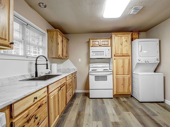 This 3-bedroom, 1-bath house features spacious living and kitchen areas, perfect for relaxing and entertaining, a modern kitchen, fully equipped with a fridge, stove/oven, dishwasher, microwave, ice-maker, and a washer and dryer! The kitchen boasts ample counter space with a farmhouse sink and lots of cabinetry.