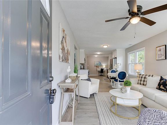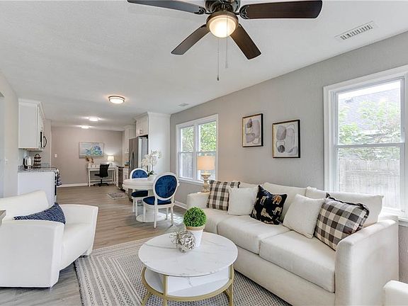 Granite countertopsNicely sized backyardCompletely remodeled kitchenCarpet in the bedroomsSpacious covered front porchFresh paintLaminate flooring