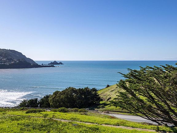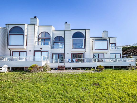 Enjoy epic sunsets and significant ocean views of both Linda Mar Beach and Rockaway beach from this elegant townhome. Dramatic high ceilings, loads of natural light and interesting architecture add to the unique beauty of this property. Both baths remodeled, one with a massive tub, the other with a custom stainless steel sink, vanity and mirror frame. Kitchen boasts a Viking refrigerator and Viking dual ovens.