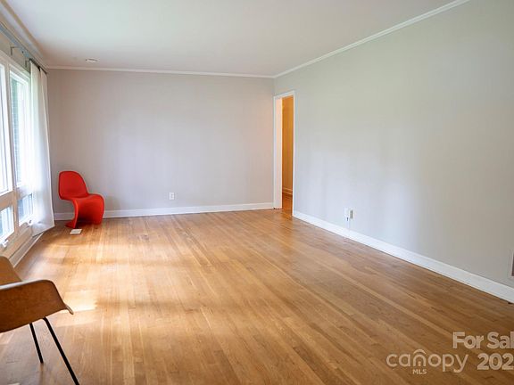 Functional kitchenLarge deckOriginal hardwood floorsWooded backyardDining area