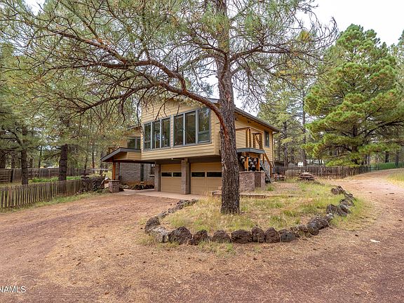 Welcome to this one of a kind property in a very special area of Flagstaff. This custom built home in Herold Ranch gives you the benefit of space sitting on over 1.5 acres and being centrally located in Flagstaff just behind Little America. This 3 bedroom, 2.5 bathroom offers a living area downstairs and upstairs. A great primary bedroom with bathroom and walk-in closet. Great windows throughout give tons of light. There is an amazing balcony and open patio. The updated kitchen will fit any great cook's needs. There is additional, very usable attic space that is not included in the square footage. Attached by a breezeway you will find a two car garage. Outside there is a great mixture of trees and plants that can be watered by the grey water system. There is a great storage shed and more!