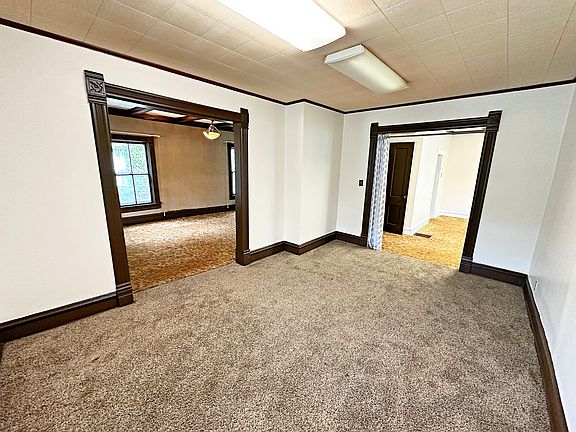 Welcome to this spacious 3 bedroom, 1 bathroom home that combines character, comfort, and functionality. A large covered front porch greets you and offers the perfect spot to enjoy the outdoors. The living room welcomes you in and features a stone veneer gas fireplace, while the adjoining family room provides extra space to relax or entertain. The kitchen comes equipped with ample cabinet space as well as a stove and refrigerator, and the formal dining room is ideal for enjoying meals. Three bedrooms and a full bathroom with a walk-in shower provide an ideal layout, while a cozy sunroom offers a private retreat for unwinding. Additional highlights include timeless woodwork, built-in features, ample closet space, and a full basement with tall ceilings. Outside, enjoy the welcoming front porch, a nice backyard, and the convenience of a 2 car detached garage. Come experience the perfect blend of charm, practicality, and comfort this home contains.