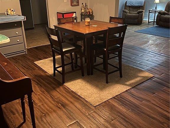 Spacious, open floor plan on first floor featuring large living room and dining room. Brand new flooring in dining room and downstairs bath! Newer windows. Beautiful new bathroom upstairs. Hardwood floors in living room. Fenced in back yard.