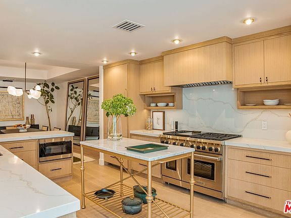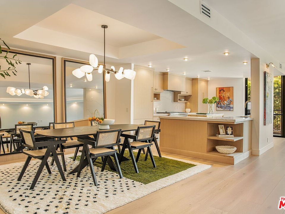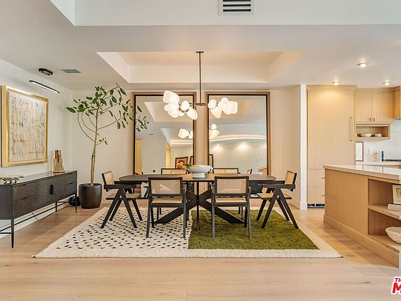 Experience elevated luxury in this newly designed 2 bedroom, 2.5 bath residence that strikes a perfect balance between modern design and natural warmth. The interior, boasting fresh and classic yet bold finishes and minimal lines, exudes sophisticated elegance. French white oak wide plank flooring is throughout this residence. A sculptural staircase takes center stage and anchors the space adding dimension and artistic flair. The expansive ambiance is enhanced by designer lighting and hardware, while the open floor plan is bathed in natural light. This home invites refined and functional living and entertaining. Sliding doors seamlessly blend indoor and outdoor spaces, ideal for hosting gatherings or enjoying peaceful relaxation. The bespoke wet bar, featuring black marble leathered countertops and an antique mirrored backsplash, elegantly adds sophistication to every occasion. The kitchen, built for today's lifestyle, is equipped with top-of-the-line appliances including a Wolf gas range, and a Miele refrigerator and dishwasher. Stunning lighting and Somfy automated shades set off the gorgeous slabs and designer hardware throughout. Unwind in the living room, with a gas fireplace set against a marble accented wall. The primary bedroom suite offers two spacious walk-in closets and an ensuite bathroom featuring mosaic marble floors and stunning marble wainscoting and slabs. This spa-like retreat has everything you need, including a soaking tub. Additional highlights include elevator access and an entry door on each level, new dual HVAC systems, new plumbing, and a large, private outdoor loggia. Enjoy luxury amenities including a 24 hour Concierge, security, optional valet parking, cable and high speed internet, EQ insurance, a newly updated pool, spa, fitness center and sauna. Located in the heart of Beverly Hills, you are just moments from the well known Golden Triangle, surrounded by fine dining and world class shopping.
