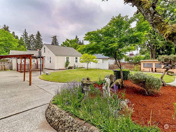 What a remarkable find in the heart of Burien. This home will steal your heart. This extensively loved and cared-for home has an attached one-bedroom studio and kitchenette with its own entry on the main floor. The impeccably manicured, large, flat- fully fenced backyard has storage sheds and shops, a gazebo, garden beds and mature landscaping. The roof is a newer composition roof, and a newer forced gas furnace was installed in 2020. Viynl siding, vinyl insulated windows. Wood-burning fireplace. Upstairs are two more bedrooms with charming built-ins. NO HOA. RV parking. Lots of storage. Covered carport.