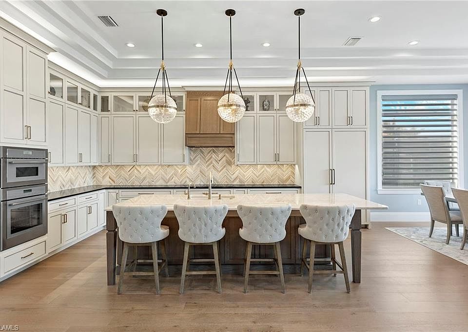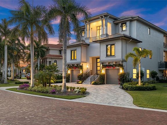 Experience the pinnacle of refined coastal living in this newly constructed masterpiece, where architectural brilliance meets effortless elegance. Every detail of this residence has been meticulously curated to offer an unparalleled lifestyle in one of Naples desirable waterfront enclaves. Upon arrival, a striking custom-built floating staircase sets the tone for the exquisite craftsmanship found throughout. The great room is a showpiece, featuring a floor-to-ceiling temperature-controlled glass wine cellar, designed to showcase a 210-bottle collection in style. The gourmet kitchen is a symphony of sophistication, adorned with hand-selected quartzite surfaces, a designer chevron mosaic backsplash and bespoke custom cabinetry. A Thermador kitchen suite with an induction cooktop ensures culinary excellence. Retreat to the expansive primary suite, a sanctuary with a private sitting room and a serene balcony overlooking the lake. The spa-inspired primary bath offers an indulgent escape with dual vanities, a Jacuzzi soaking tub, and a multi-functional shower featuring dual shower heads, a rain shower, three body jets and a hand wand, an experience designed for ultimate relaxation. Go outdoors and immerse yourself in the quintessential Florida lifestyle. The gas-heated saltwater pool and raised spa create an idyllic setting, while the fully equipped outdoor kitchen, and alfresco fireplace invite effortless entertaining. Thoughtfully integrated landscape lighting, motorized retractable lanai screens, a privacy-enhancing Clusia hedge and a Swat mosquito spray system ensure year-round comfort. This is more than a home, it’s a statement of elegance.