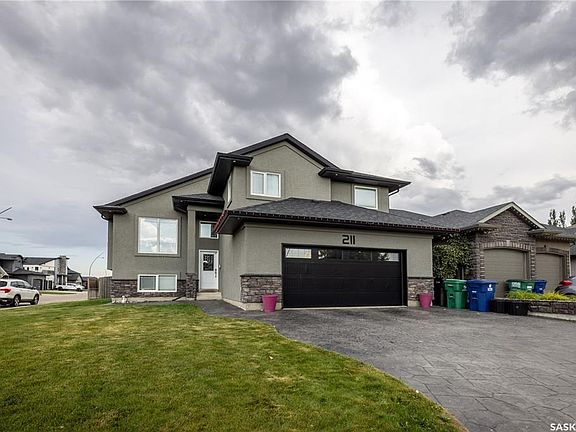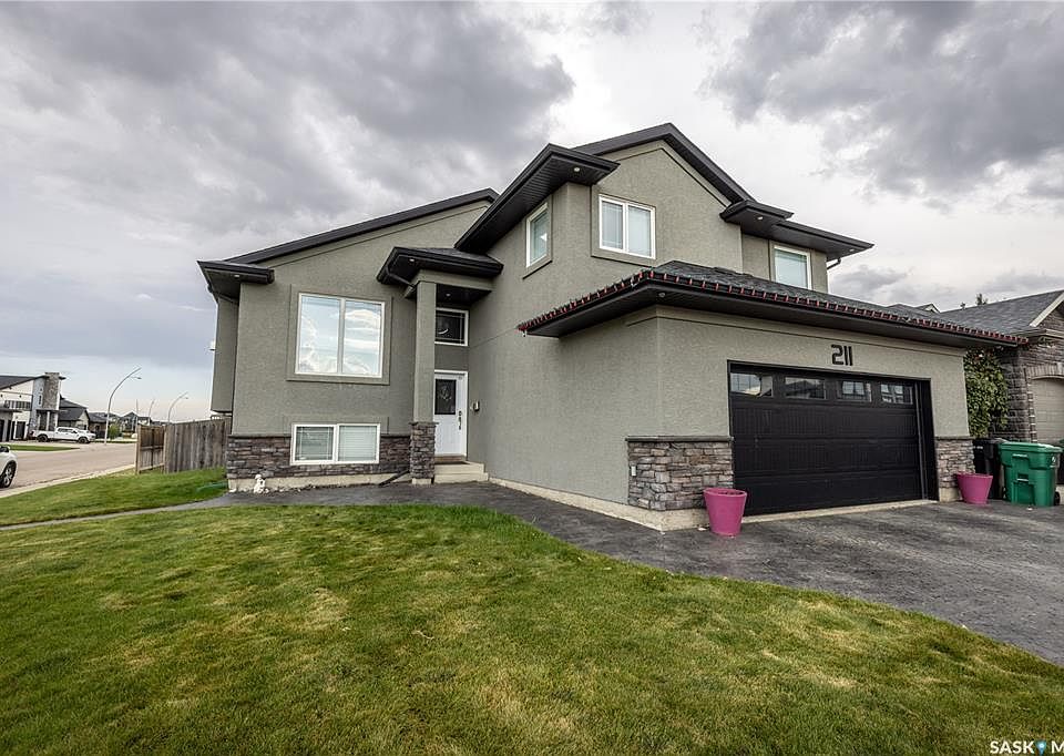 Welcome to 211 Sauer Crescent in beautiful evergreen! This 1,459 sqft modified bi-level is the kind of home that balances family function with a little bit of flair. Set on a large corner lot, you'll enjoy extra outdoor space for kids, pets, or your dream garden. The fully fenced yard, deck, and heated double attached garage make everyday life just a little easier (and warmer in the winter). Inside, the open-concept main floor invites connection. The spacious kitchen boasts quartz countertops, plenty of storage, and a layout that flows right into the living and dining areas. A gas fireplace adds the perfect touch of cozy for movie nights or lazy Sundays. With 4 bedrooms and 3 bathrooms, there's room for everyone to spread out. The primary suite features a 5-piece ensuite and a walk-in closet—big enough to keep you organized, even if you're not a minimalist. Head downstairs and you'll find the ultimate hangout zone: a full wet bar complete with floating shelves, built-in fridge, dishwasher, and built-in speakers. Whether you're hosting friends, family, or just yourself and the game, this lower level is designed for good times. Evergreen is one of Saskatoon's most family-friendly neighbourhoods, with schools, parks, trails, and all the amenities you need just a short drive away. If you've been hunting for a home that's practical, stylish, and ready for your next chapter, this one might just be the perfect fit. Come take a look—you'll see why Evergreen feels like home!