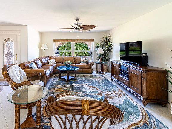 This beautifully maintained and updated waterfront home is tucked away on a quiet cul-de-sac, just minutes from the beach and offering ideal, quick boating access to East Marco Bay. Featuring 3 bedrooms, 2 full baths, and an open floorplan, the home is adorned with porcelain tile flooring and custom shades throughout.