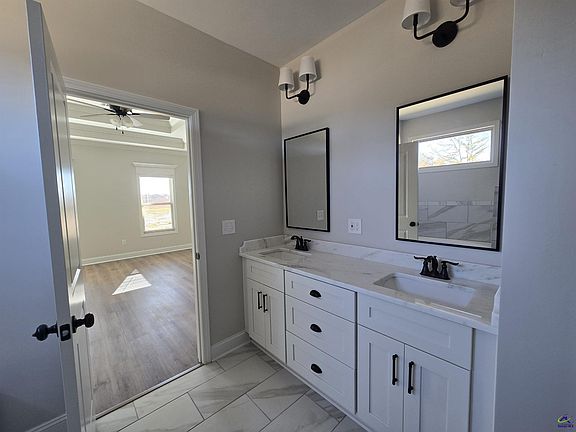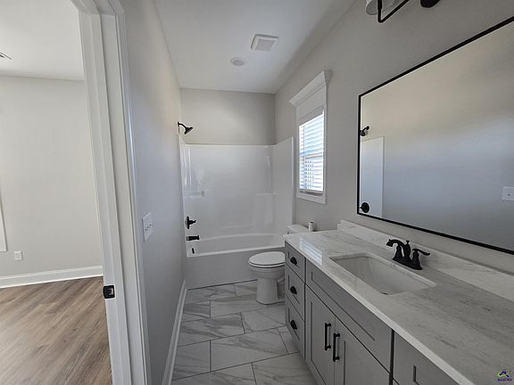 Situated on a spacious three-quarter-acre corner lot, this stunning new construction home is designed with elegance and comfort in mind. Priced at $414,900, this exquisite property boasts a perfect blend of luxury and practicality, making it ideal for discerning buyer seeking a serene and upscale living experience. As you approach this four-sided brick home, you are greeted by a charming front porch perfect for enjoying peaceful evenings. The side entry garage with a convenient turn-around pad enhances the curb appeal, while the landscaping, complete with a sprinkler system and a partially sodded yard, sets the stage for this beauty. Step inside to discover a spacious open floor plan that seamlessly connects the living areas, highlighted by luxurious LVP flooring and elegant tile in the bathrooms. The great room, featuring recessed lighting and a cozy electric fireplace, flows into a gourmet kitchen equipped with pristine white cabinets, sleek black hardware, a farmhouse sink, and a pantry. The formal dining area is ready to host your memorable gatherings. The home offers a split plan with the primary suite and additional bedroom on one side, providing privacy and tranquility. The primary suite is a true retreat, featuring a dual vanity, a soaking tub, a beautifully tiled shower with a framed shower door, and a large closet. Across the home, two more bedrooms share a convenient Jack and Jill bathroom. Additional luxuries include a large laundry area with ample cabinet space, coffered and trey ceilings throughout, and ceiling fans. Outside, the covered back porch and additional grilling pad invite you to enjoy the outdoors in comfort and style. Experience the perfect blend of luxury, comfort, and convenience at 211 Serenity Court. Embrace the lifestyle you deserve in a home that is as unique as you are