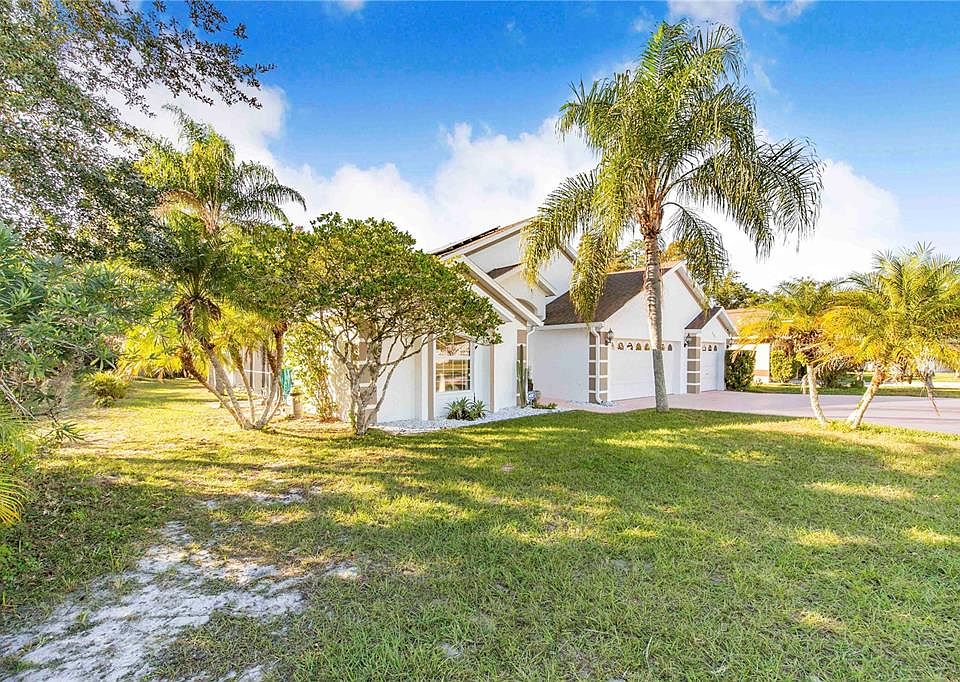One or more photo(s) has been virtually staged. Welcome to this stunning 5-bedroom, 4.5-bath pool home perfectly situated on a corner lot with serene pond views and conservation land behind — offering privacy, space, and modern efficiency upgrades throughout. This thoughtfully designed home combines comfort, style, and sustainability, featuring a three-car garage, energy-efficient systems, and solar power for reduced utility costs. Property Overview Bedrooms: 5 Bathrooms: 4.5 Garage: 3-car Lot: Corner lot with pond and conservation views Pool: Screened-in pool with newly resurfaced finish and updated tile (2024) Interior Features Spacious layout with a private pool-entry suite featuring a full bath and sitting area — ideal for guests or multigenerational living Main home includes a large open-concept kitchen and living room perfect for entertaining Primary suite and an additional bedroom located downstairs Two bedrooms upstairs share a convenient Jack & Jill bathroom Every bedroom offers sliding glass doors with direct access to the pool area Updated flooring: Vinyl plank and floating floors in downstairs bedrooms (2017); new carpet in upstairs bedrooms (2025) Fresh interior paint (2025) and updated bathroom light fixtures (2025) Energy-Efficient & Smart Upgrades Solar panels (2021) — owned outright, saving an average of $100/month on electricity Battery wall backup system (2023) — provides stored solar power during outages Variable-speed pool pump (2021) for energy efficiency Additional attic insulation (2021) to improve climate control New HVAC system (2023) with variable speed 5-ton AC, new ductwork, and three-zone temperature control for the main home, upstairs, and pool suite Hybrid hot water heater (2023) that also helps cool the garage Hurricane-rated, sun-reflective sliding glass doors (2023) for improved safety and energy savings Outdoor Living Resurfaced pool (2024) with new tile and updated finishes Beautiful pond and conservation views for peaceful outdoor enjoyment Spacious patio area perfect for entertaining or relaxing by the pool Location Centrally located near shopping, schools, and medical facilities, this home offers the perfect balance of convenience and tranquility. This property is a rare find — combining modern upgrades, energy efficiency, and a flexible floor plan in a highly desirable location. Schedule your private showing today to experience everything this exceptional home has.