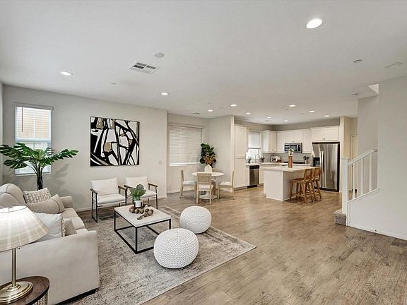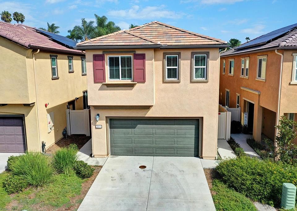 Built in 2020 and still feeling brand new! This modern Laurel Creek home has been freshly updated with brand-new carpet and a full interior paint refresh, making it truly move-in ready. Step inside to an open and inviting floor plan where the living, dining, and kitchen areas flow seamlessly together. The contemporary kitchen shines with quartz countertops, stainless steel appliances, shaker cabinetry, and a center island that doubles as a casual dining or work-from-home spot. Upstairs, the spacious primary suite features an oversized walk-in closet and en-suite bath with dual sinks and walk-in shower. Two additional bedrooms are joined by a versatile loft — perfect as a family room, playroom, or office. Energy-efficient upgrades include solar, a tankless water heater, and smart home features to keep life convenient and affordable. Community amenities include a spa, BBQ area, and neighborhood parks, plus front yard maintenance included. With easy access to Highway 78 and just minutes from Vista’s growing mix of restaurants, coffee shops, breweries, shopping, and entertainment, this home offers the ideal balance of style, comfort, and convenience. A rare opportunity to own a nearly new home in a thriving community — don’t miss it!