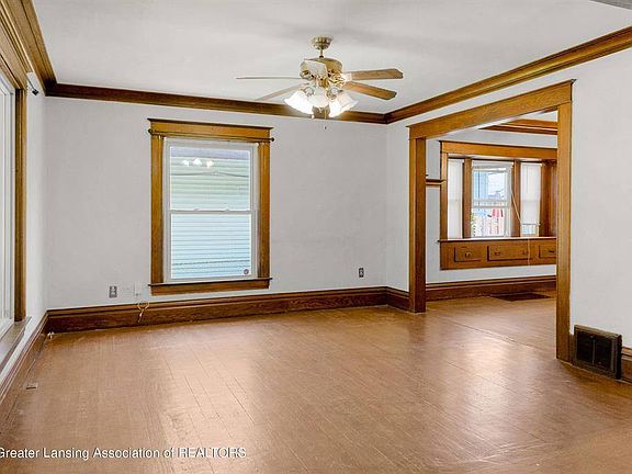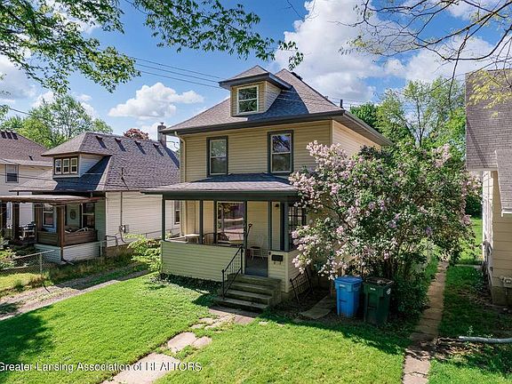 This classic American foursquare two-story home is the perfect family home. Beautiful original wood baseboards and trim throughout the home. The Kitchen was updated in 2020 and kitchen appliances stay with the home. Located in the Moores Park neighborhood near REO Town. This home features more than 1200 square feet, brand new carpet in the bedrooms(June 2022), vinyl replacement windows, newer PVC plumbing, a formal dining room, two car garage, covered porch, & quiet neighborhood.