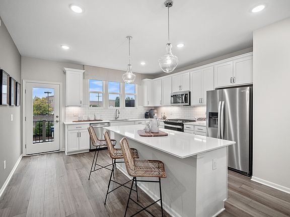 Exciting new 3-story townhomes in Schaumburg High School District 211 near shopping, dining and recreation. The Halston is a spacious open concept plan with the kitchen in the back of the home with access to the large outdoor deck. This Halston will be ready to close in January 2026. The spacious gathering room is open to the kitchen and dining area. You will enjoy preparing meals in the great chef-inspired kitchen featuring built-in SS appliances, Quartz counters, a beautiful tile backsplash and plenty of cabinets and storage. Your primary bedroom suite is private and features a spa-like bathroom with a tiled walk-in shower with a seat. You have a double-bowl vanity with Quartz counter. Enjoy the convenience of a 2nd floor laundry room. Two additional bedrooms and a full 2nd bathroom complete the 3rd floor. There is a flex room on the 1st floor that you can use as you need - office or den. Designer features include Smart Home package, brushed nickel finishes throughout, and wrought iron rail and spindle stairways. Photos of similar home shown with some options and finishes not available in this home at this price. Townhome 10343. JANUARY 2026 CLOSE!